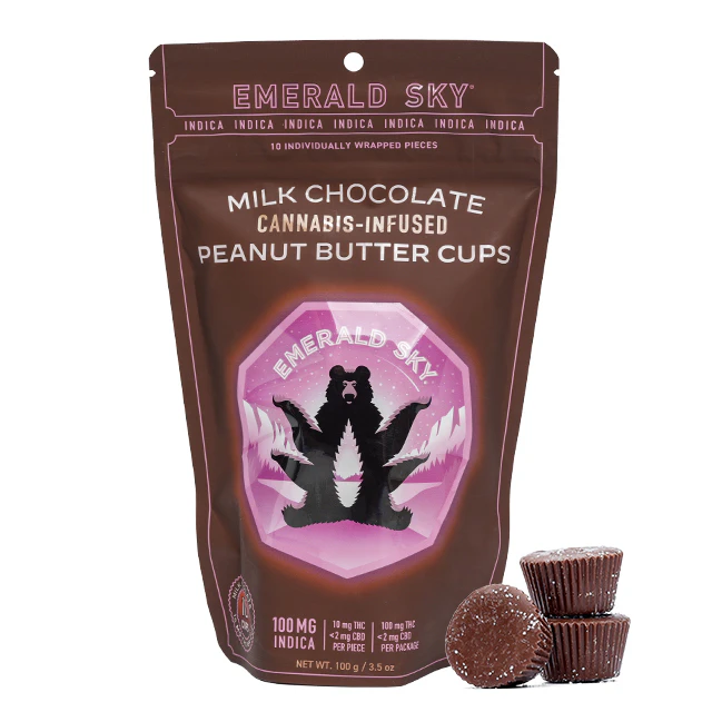 Ingredients: Milk Chocolate (Sugar, Cocoa Butter, Chocolate, Whole Milk, Soy Lecithin (an emulsifier), Sea Salt, Vanilla Extract), Peanut Butter (Peanuts, Salt), Sugar, Fractioned Palm Kernel Oil, Lactose (Milk), Salt, Soy Lecithin (an emulsifier), Cannabis Extract.