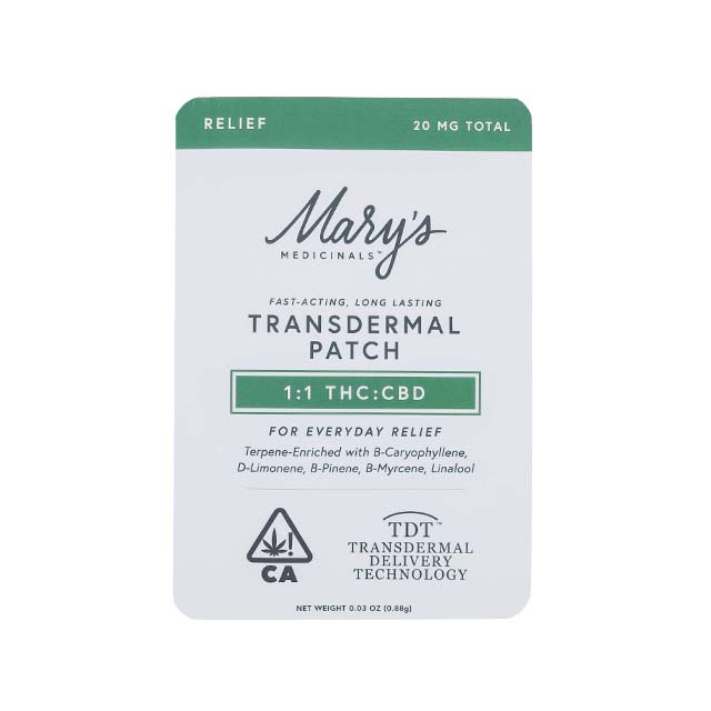 Mary’s Medicinals Relief Transdermal Patch, with a 1:1 CBD:THC ratio, is designed to promote relief from common aches and pains in your daily life. Our Everyday Relief products are formulated with natural ingredients that provide systemic relief from daily stressors. Winner of the 2023 Michigan and SoCal High Times Cups, Mary’s Relief Transdermal Patch is sure to be a winner in your book as well.