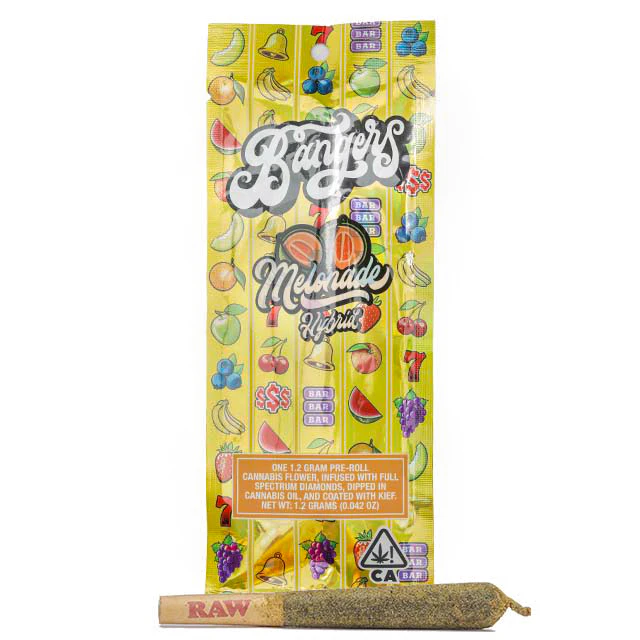 Dive into a refreshing experience with the Melonade Diamond and Kief Infused Pre Roll. This Hybrid strain combines the sweetness of ripe melon with a refreshing lemonade zing.