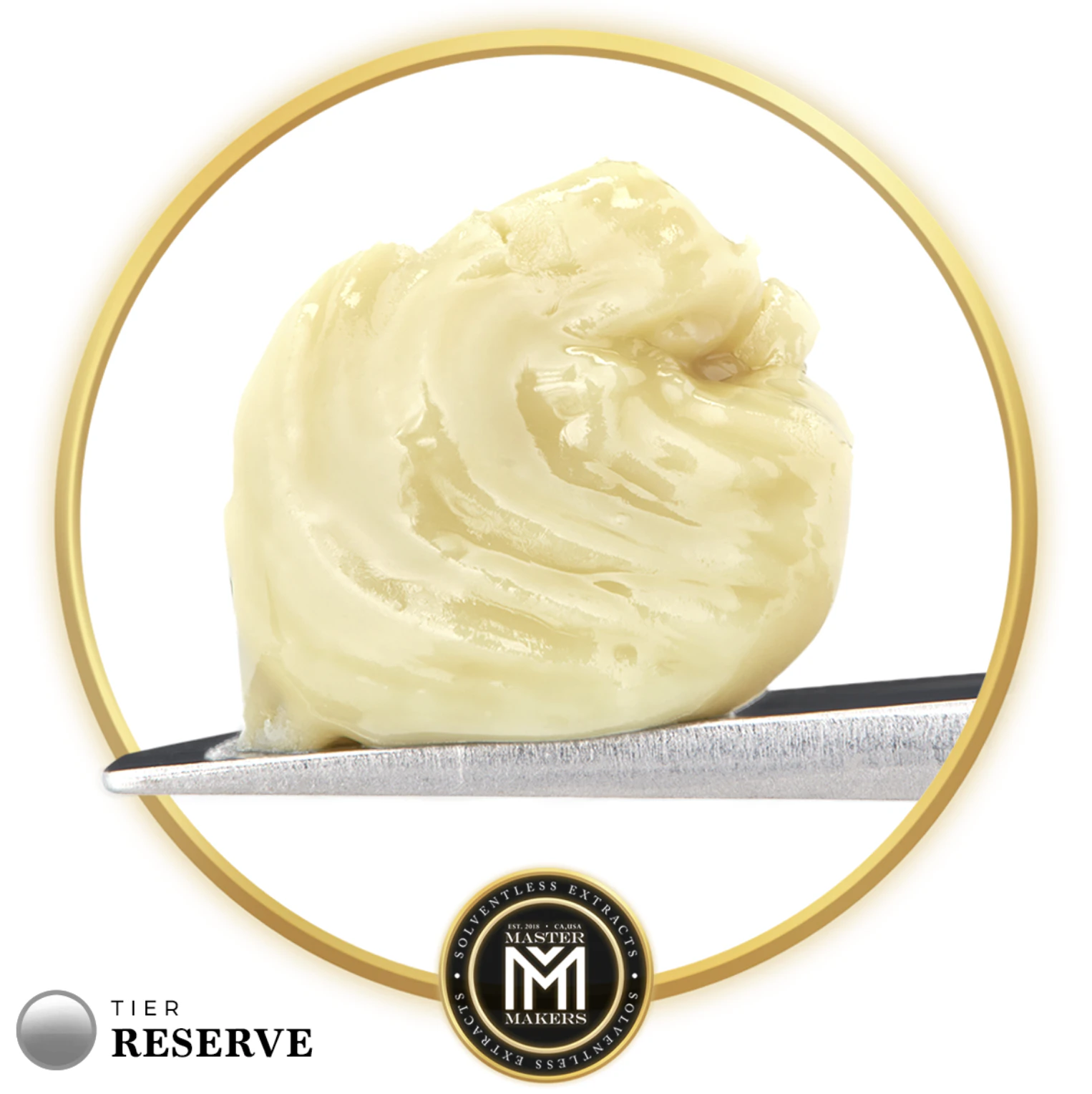 " "Perfectly cold cured rosin is an art. First our QC team carefully selects the perfect ratio of ice water hash microns unique to each genetic, then the rosin is pressed and cured for several weeks. Once it has reached its peak maturity, we hand whip into a velvety texture with great color and exceptional flavor profile.