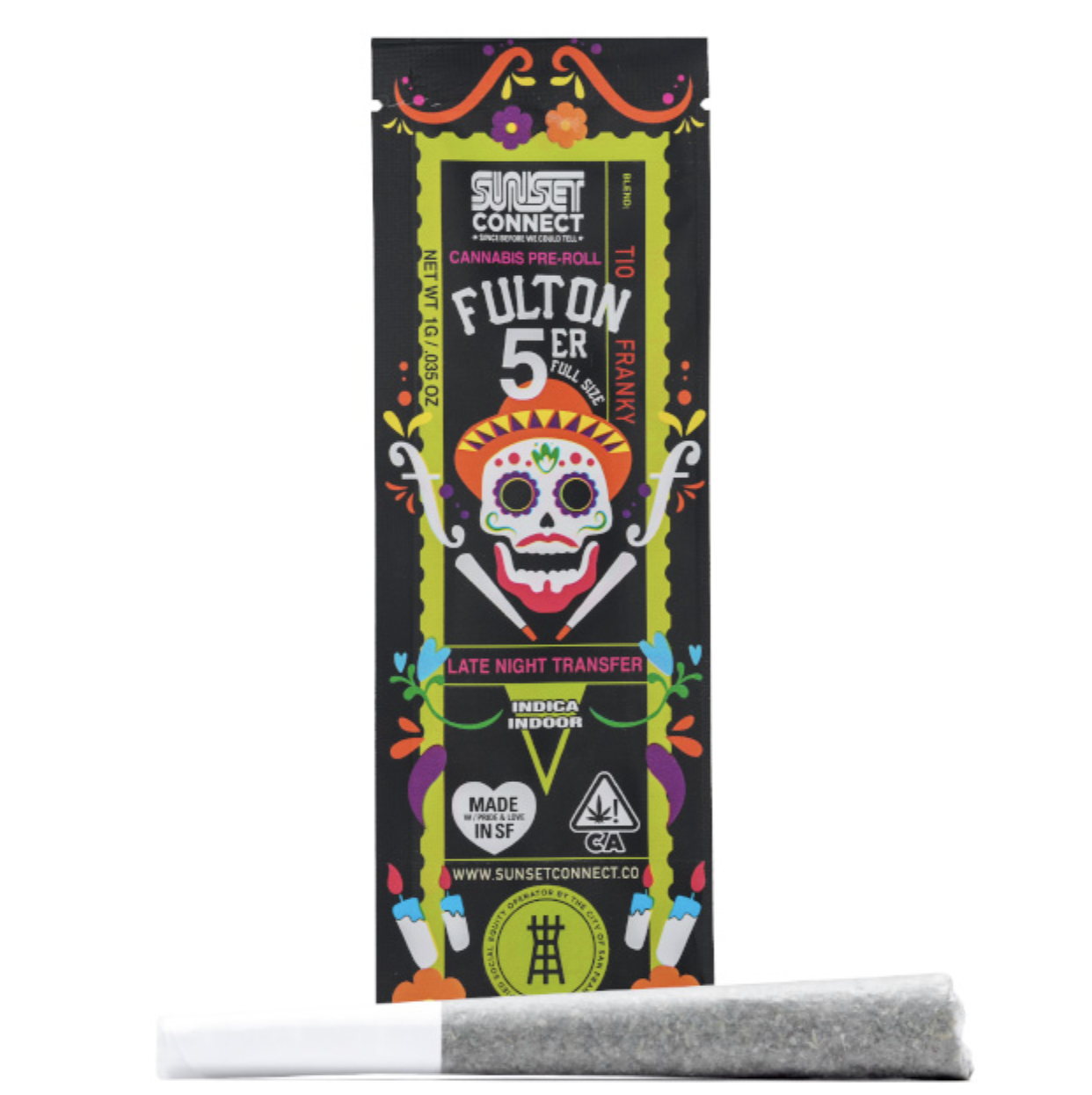 Introducing the Tio Franky Fulton 5'er, a preroll with a pedigree as poignant as a heartfelt eulogy and as lively as a Day of the Dead parade. In memory of Franky, the trailblazer who urged his buds out of the shadows but left the party too soon, this blend combines sour grapes with Franky’s all-time favorites—blueberry and strawberry cough—creating a flavor as legendary as the man himself. Each package, adorned with the festive colors of Dias de los Muertos, serves as a reminder that while some legends end, others are rolled up and passed on. Smoking a Tio Franky isn't just a nod to nostalgia; it's a celebration of life, legacy, and the long, strange trip it is. Here's to you, Franky—gone but never forgotten.